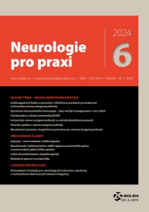 HLAVNÍ TÉMA – VASKULÁRNÍ PROBLEMATIKA Antikoagulačná liečba u pacientov s fibriláciou predsiení po prekonaní ischemickej cievnej mozgovej príhody Spontánní intracerebrální hemoragie – jaký má být management v roce 2024? Tenektepláza v liečbe ischemickej NCMP Ischemické cievne mozgové príhody vo vertebrobazilárnom povodí Poruchy spánku a cievne mozgové príhody Manažment pacienta s kognitívnou poruchou po cievnej mozgovej príhode PŘEHLEDOVÉ ČLÁNKY Gepanty – nové molekuly v léčbě migrény Ravulizumab v léčbě pacientů s AQP4-IgGpoz neuromyelitis optica a onemocněním jejího širšího spektra Léčba chronické bolesti, atypické opioidy Nadměrná spavost vyvolaná léky Z POMEZÍ NEUROLOGIE Komunikační strategie pro neurology při rozhovoru s pacienty s roztroušenou sklerózou při zhoršení diagnózy www.solen.cz | www.neurologiepropraxi.cz | ISSN 1213-1814 | Ročník 25 | 2024 Neurologie pro praxi 20246